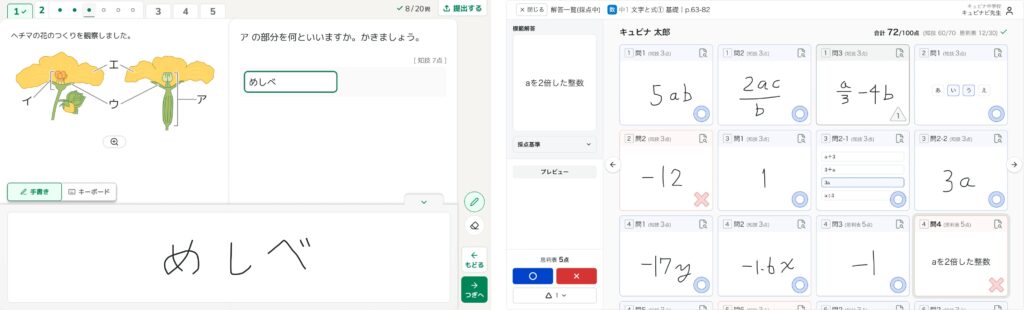 • 大問/小問といった子どもたちが慣れ親しんだ紙のテストと同様の問題構成
